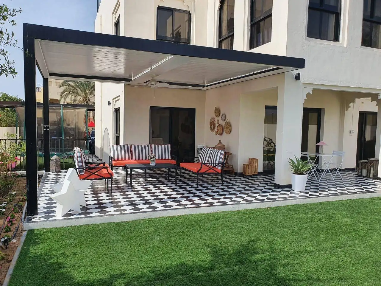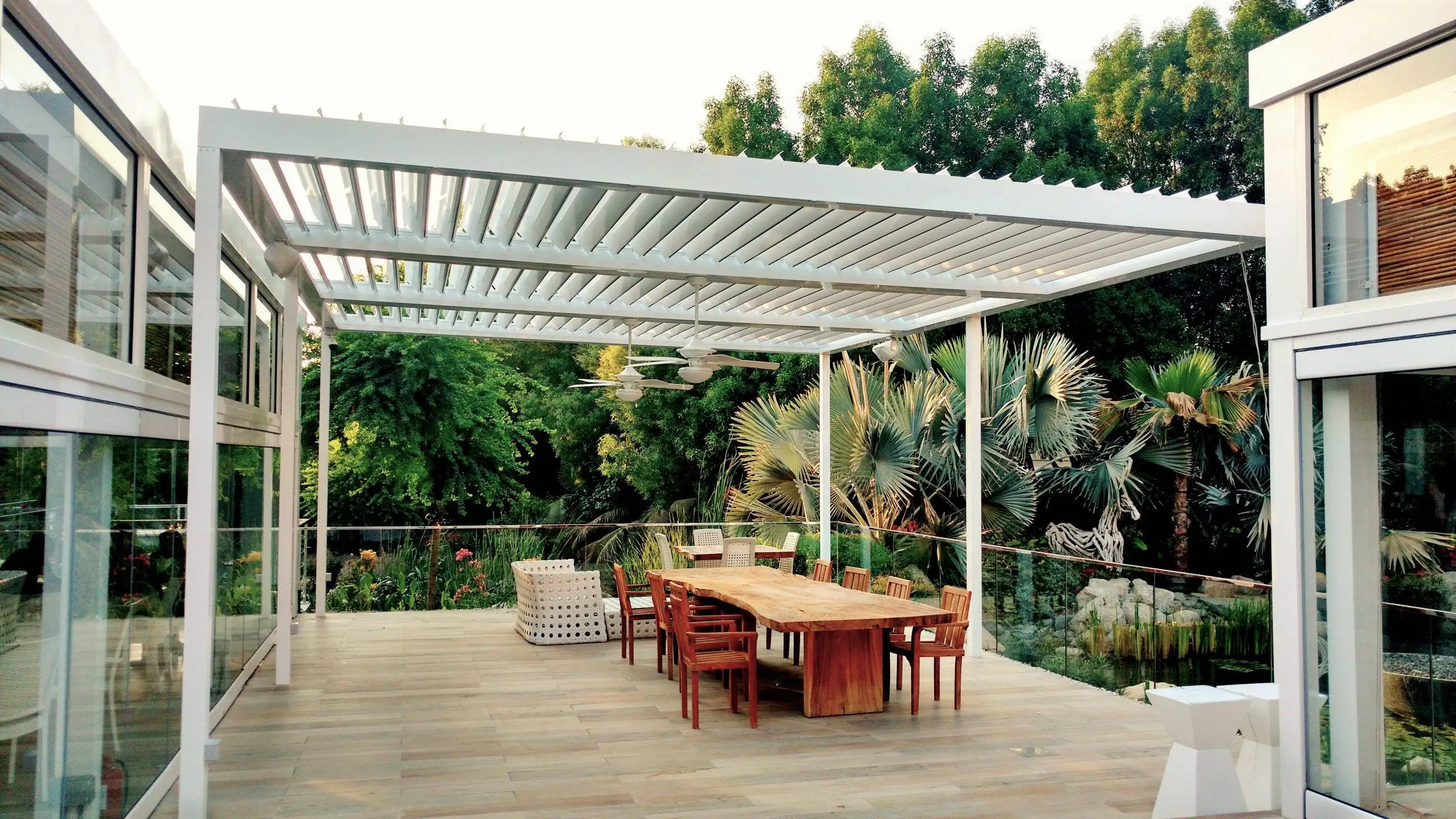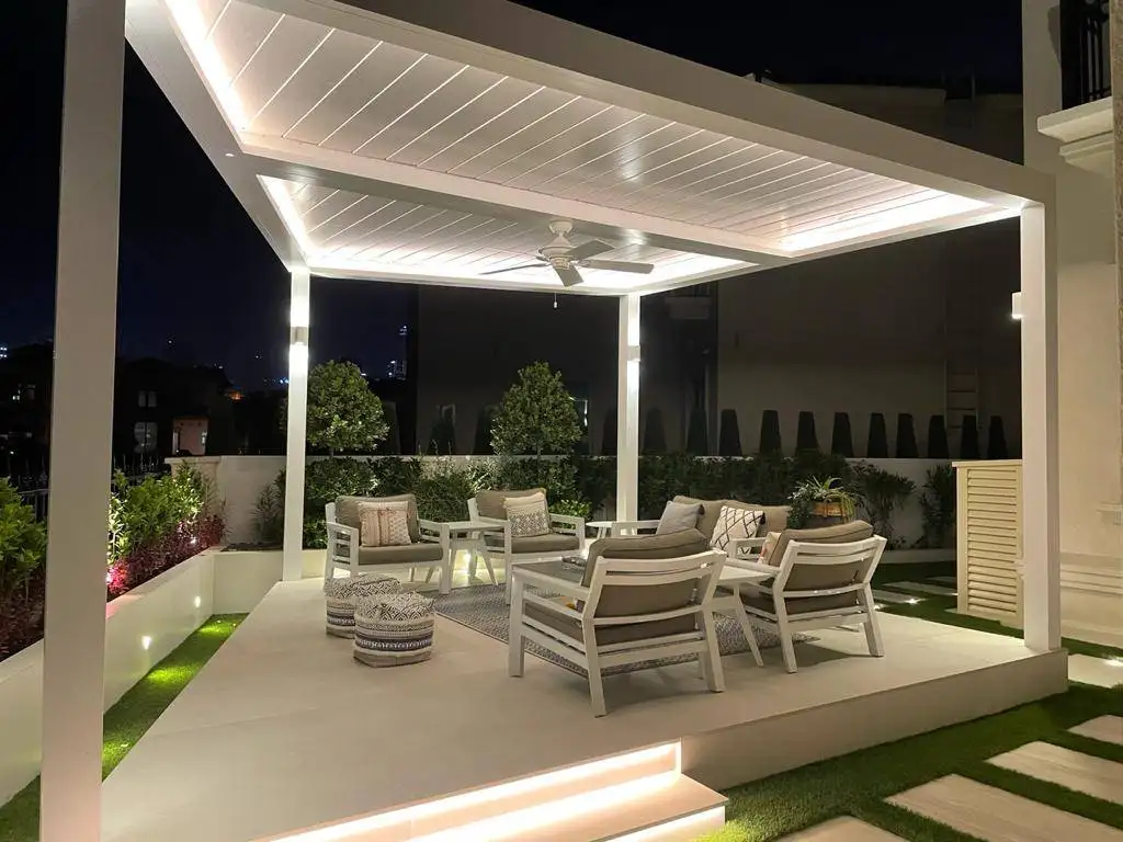 Highly customizable pergolas that create stunning appearance and exceptional variety. EcoShade can recommend addition of side louvers for privacy, posts, and some laser-cut aluminium sheets for our clients’ needs.